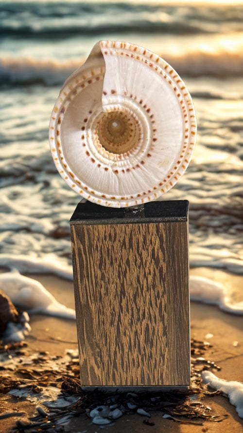 Handgefertigte Skulptur mit naturbelassener Südseemuschel – klare Form, ruhige Ausstrahlung · Nr. 169